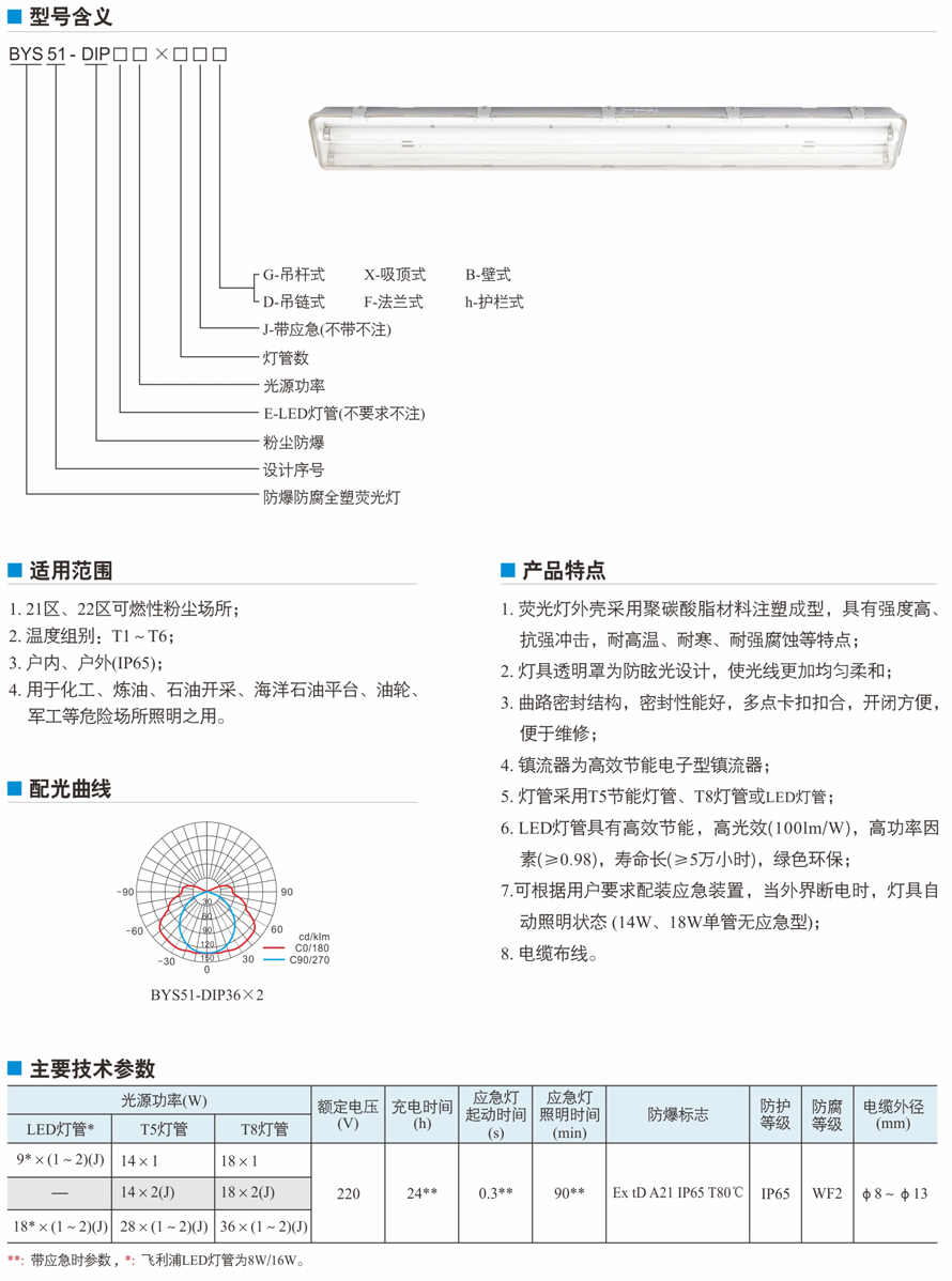 BYS51-DIP(E)系列粉塵防爆防腐全塑熒光燈(高效節(jié)能LED燈管)