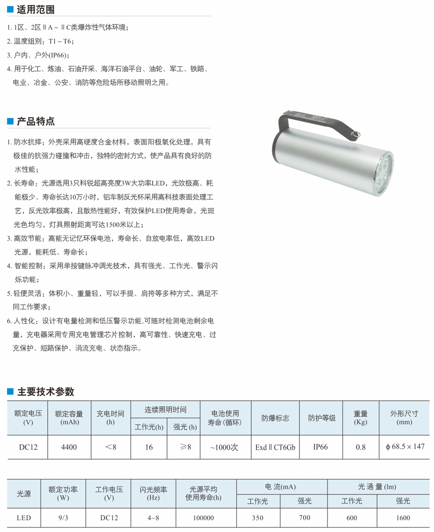 BS52A系列手提式防爆探照燈