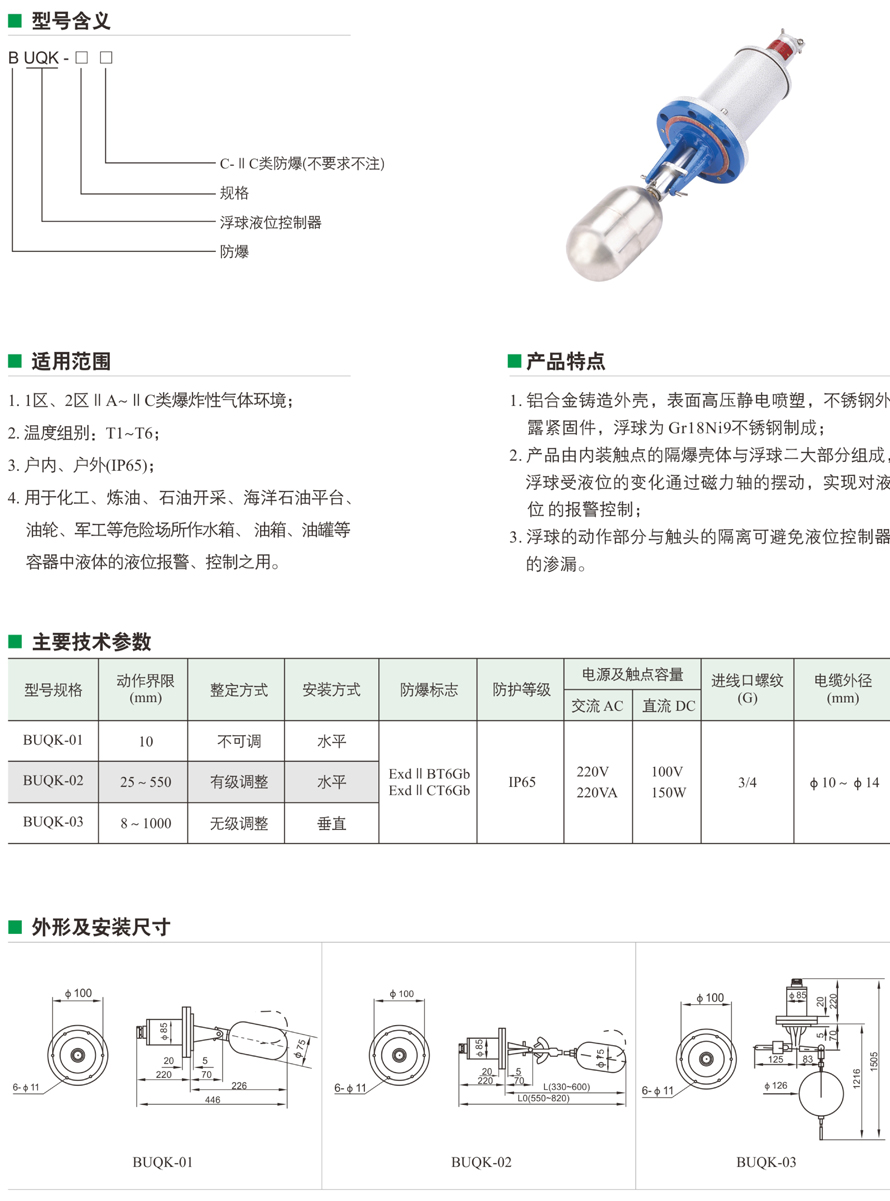 BUQK系列防爆浮球液位控制器(II B、II C)