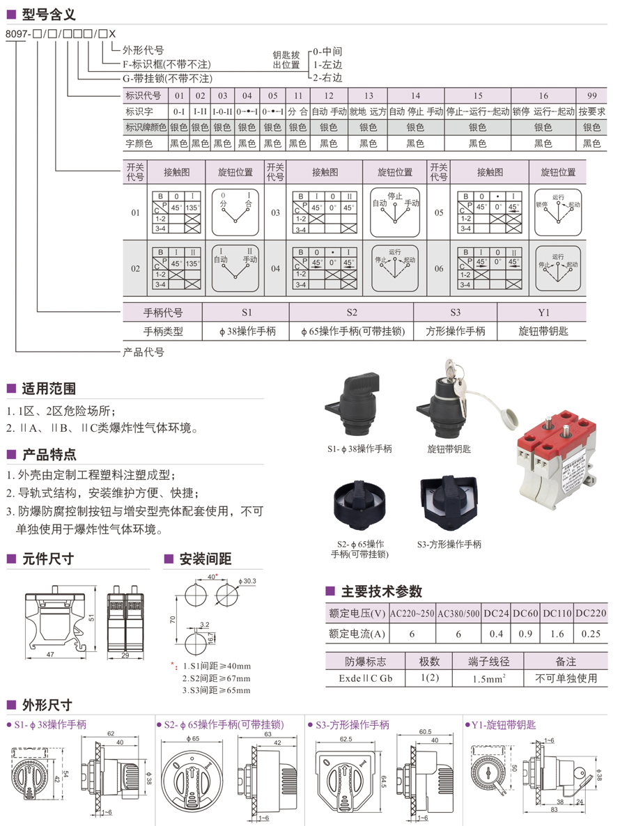 8097-S(Y1)X系列防爆防腐控制按鈕(開關、帶鑰匙)